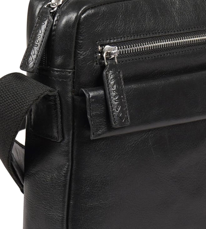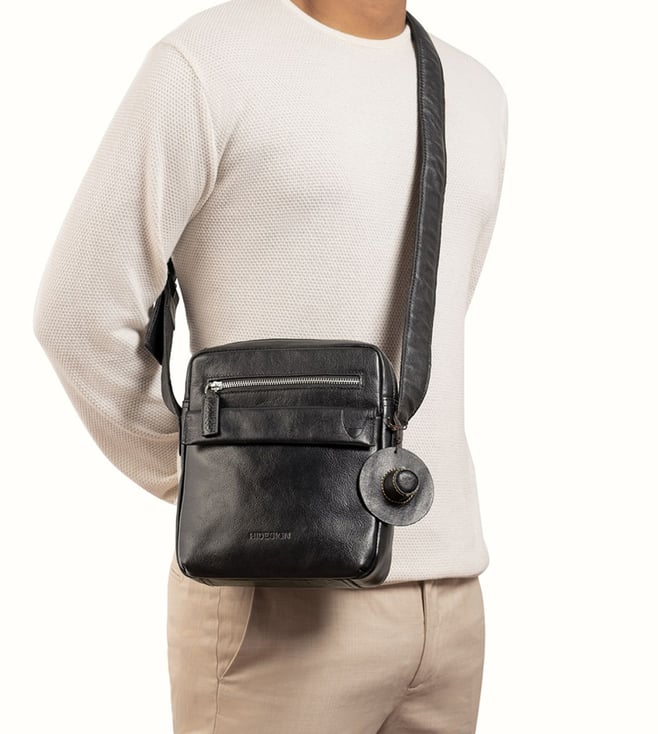 Hidesign Black MEZCAL 01 Textured Medium Leather Cross Body Bag