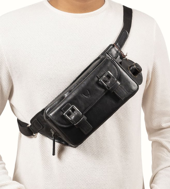 Hidesign Black PISCO 01 Textured Small Leather Cross Body Bag