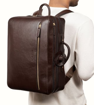From work to wander, carrying the fearless rhythm of Mexico. Pisco 02 is built for men who move seamlessly between work, travel, and life. Crafted in robust natural-grained Gaucho leather, it blends the ease of a backpack with the refinement of a briefcase. As a backpack, it features padded compartments for both your laptop (up to 16¿) and iPad, along with organised slots for pens, cards, and slips. As a briefcase, its spacious compartment is designed to carry clothes or travel essentials with ease. Finished with an eagle deboss patch and a travel-friendly luggage tab.