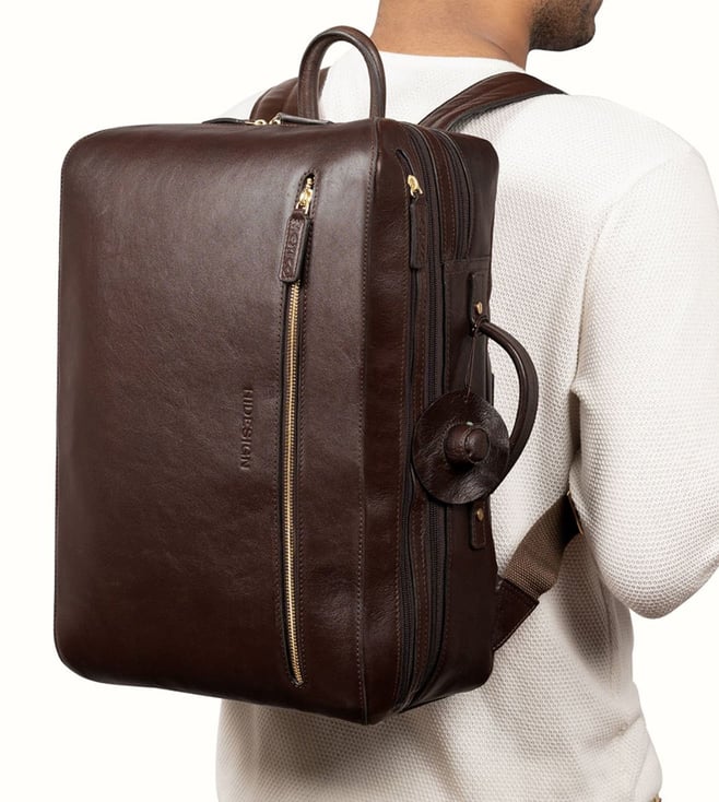 Hidesign Brown PISCO 02 Textured Large Leather Backpack