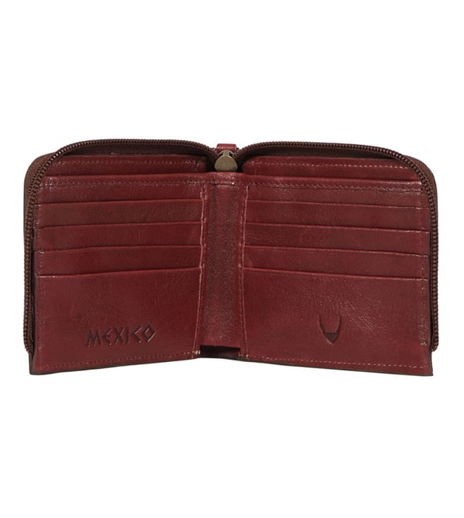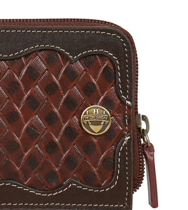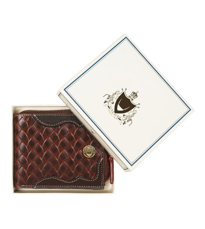 Hidesign Maroon PISCO W Woven Small Leather Bi-Fold Wallet