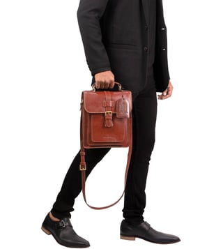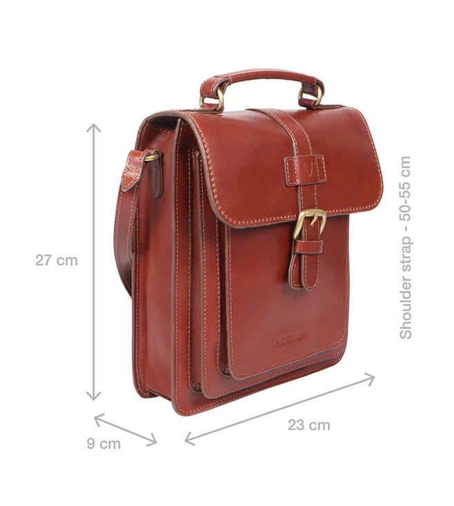 Carry all your essentials in style with the Hidesign Sustain - 04 Mens Bag Crossbody, perfect for casual occasions. Made of high-quality tan leather, this bag is designed for men who value fashion and practicality.' Disclaimer: All other items in the image are only for display purposes and will not be a part of the delivery content. Product colour may slightly vary due to photographic lighting sources. Country of Origin - India.