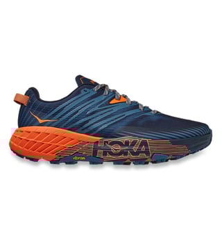 Named for HOKA Athlete Karl 'Speedgoat' Meltzer, the Speedgoat 4 is part of an award-winning family known for making quick work of technical terrain. The mesh upper provides breathability. The 3D printed overlays provide additional midfoot support and lockdown for a more secure feel. The gusseted tongue features strategic cutouts for breathability. Lacing eye-rows contain a small winged component for a secure fit. Midsole features a lightweight foam for a more responsive ride. Wider forefoot offers a more stable ride and accommodating fit. It has a heel height of 33mm and a weight of 306g.
