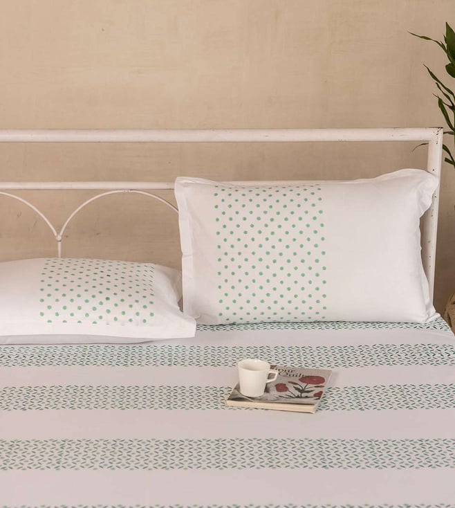 Jaipur Jade Green Star Hand Block Printed 1 Bedsheet with 2 Pillow Case