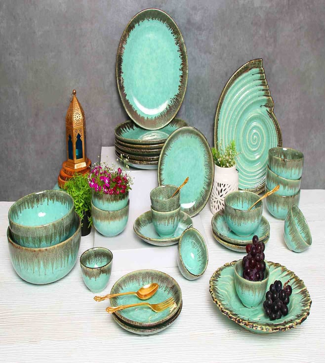 Green Peppermint Grand Premium Handmade Ceramic dinner set 82pc