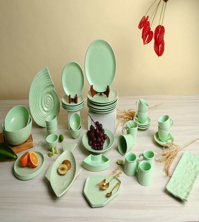 Green Lemongrass Massive Ceramic Dinner - Set of 82 Pcs