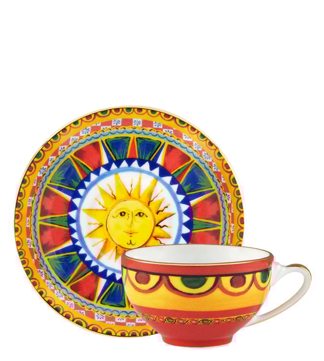 Multicolor F.Do Yellow Carretto Siciliano Tea Cup & Saucer Set