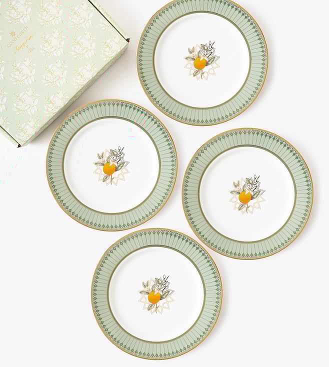 Goodearth Green Fine Bone China Tangerine Dinner Plates (Set Of 4)