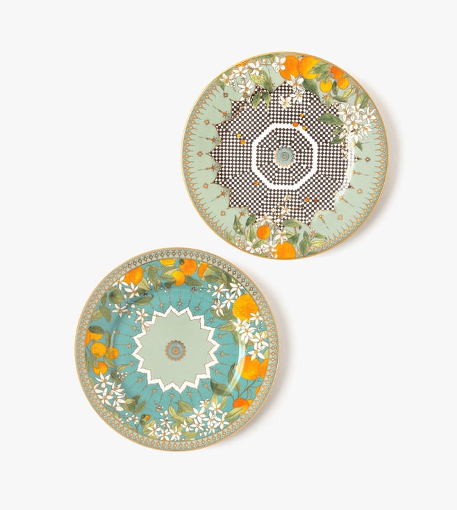 Goodearth Green Fine Bone China Tangerine Dessert Plates (Set Of 2)