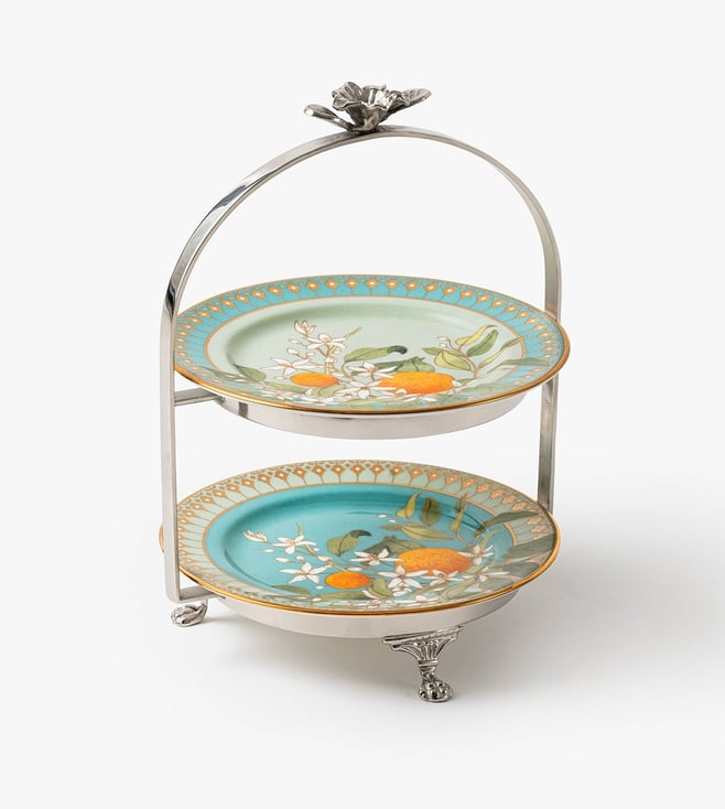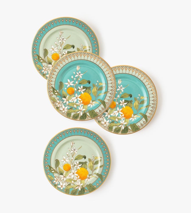 Goodearth Green Fine Bone China And Nickel-Plated Brass Tangerine Mini Plate With Stand (Set Of 3)