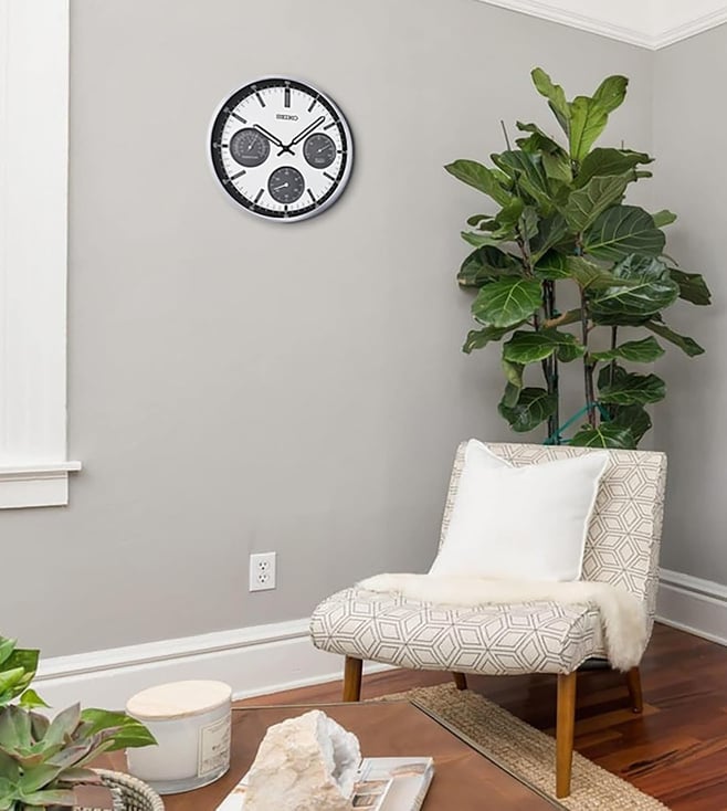Analog Wall Clock With Thermometer & Hygrometer, Quiet Sweep, White Dial & Luminous Hands