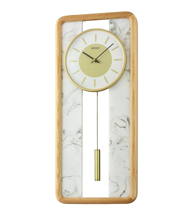 Rectangular Wall Clock With Wooden Case & Pendulum, Brown Dial
