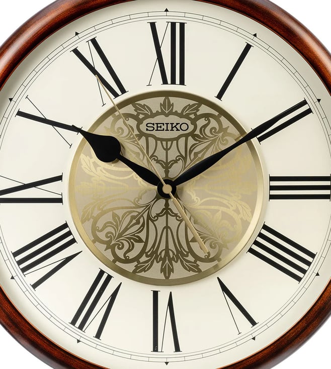Brown Elegant Round Medium Analog Wall Clock With Dual Seconds Clock