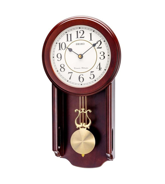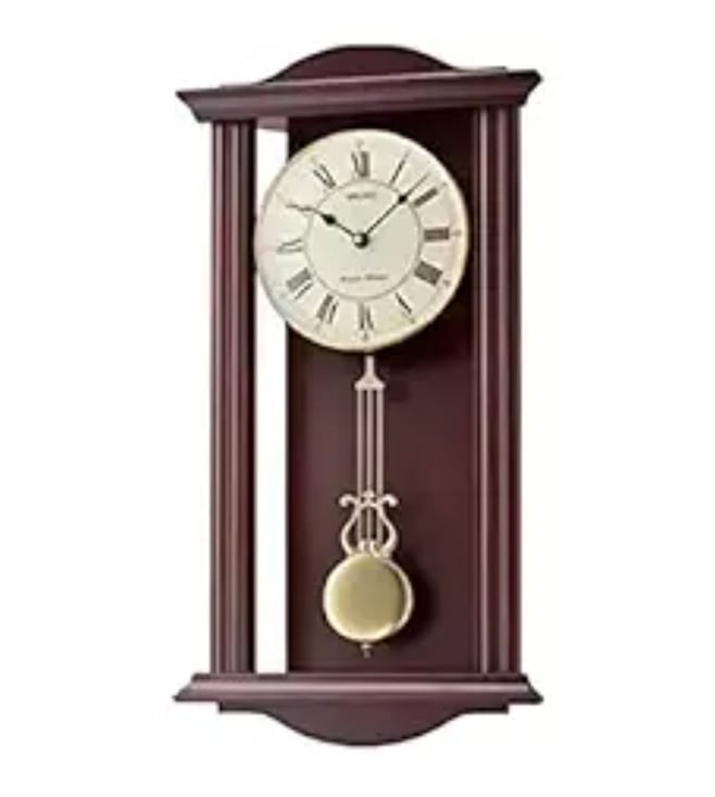 Brown Wooden Pendulum Analog Dual Chime English Numbers Analog Wall Clock
