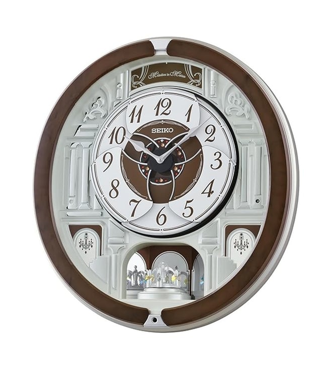 Brown Elegant Round Full Figure Medium Melodies In Motion Analog Wall Clock