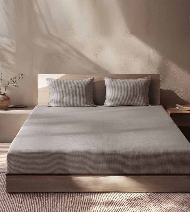 Grey Linen Cotton Lightweight Super King 7Pcs Quilted Bed Spread Set