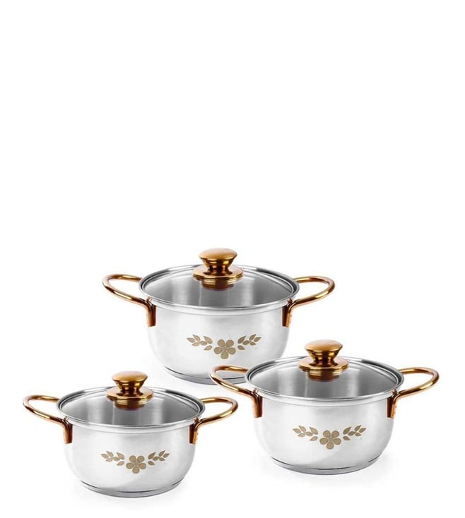 Silver & Gold Stainless Steel Stanton Casserole with Glass Lid - Set of 3
