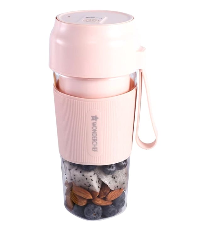 Pink ABS Plastic & Steel 120W Nutri-Cup Portable Blender with USB Charging (300 ml)