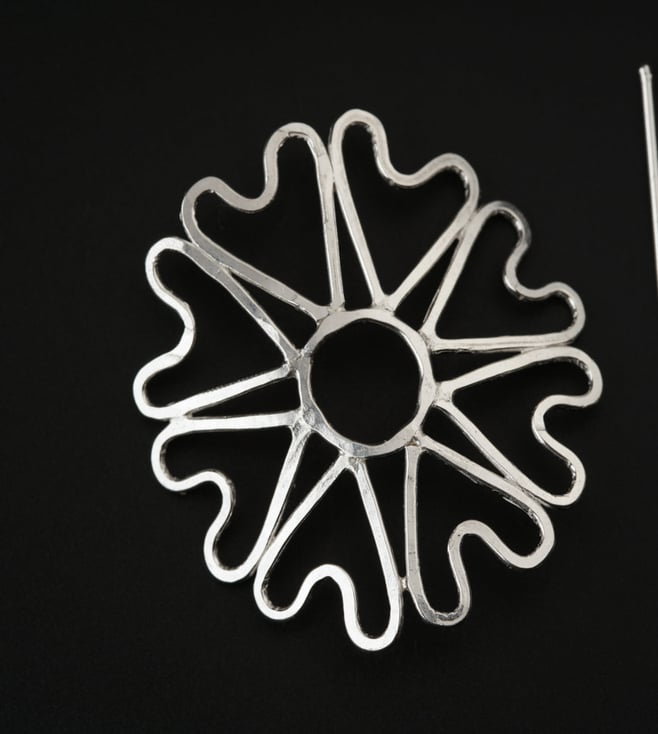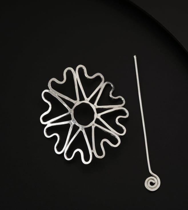Flower hairpin, handcrafted silver premium jewellery. Crafted from 92.5 percent sterling silver, this piece reflects artisanal skill and timeless charm. Ideal for special occasions or everyday elegance. Style tip, pair it with ethnic or fusion wear for a standout look.