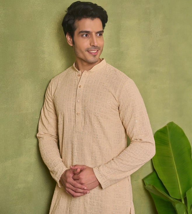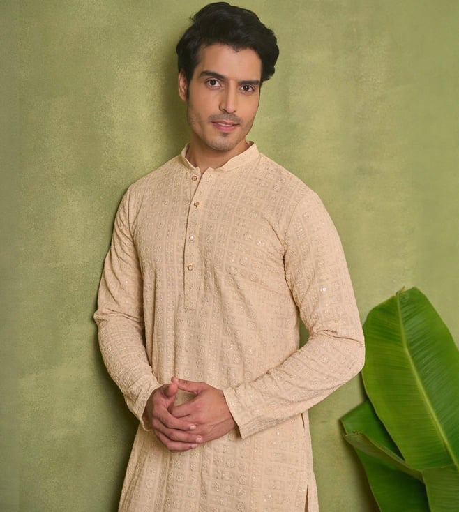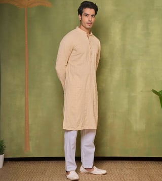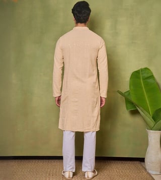 Elevate your everyday look with our House of Chikankari Beige Sequins Embroidered Regular Fit Kurta. Crafted with intricate chikankari embroidery and delicate sequin detailing, this kurta effortlessly combines traditional elegance with modern style. The regular fit ensures comfort all day long, making it perfect for any occasion. Step out in confidence and make a statement with this timeless piece that showcases your unique sense of fashion. Upgrade your wardrobe with the House of Chikankari Kurta and experience the perfect blend of sophistication and comfort.
