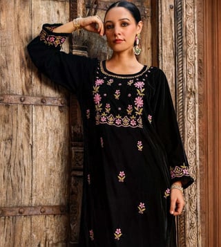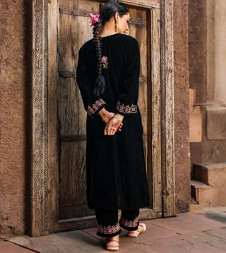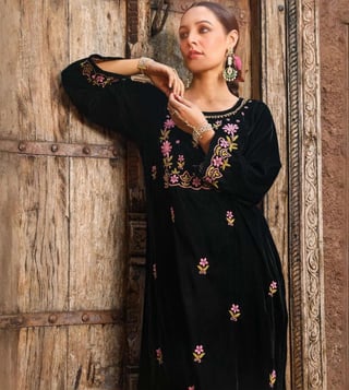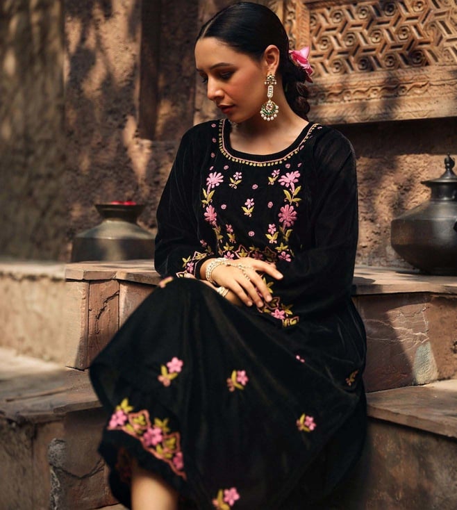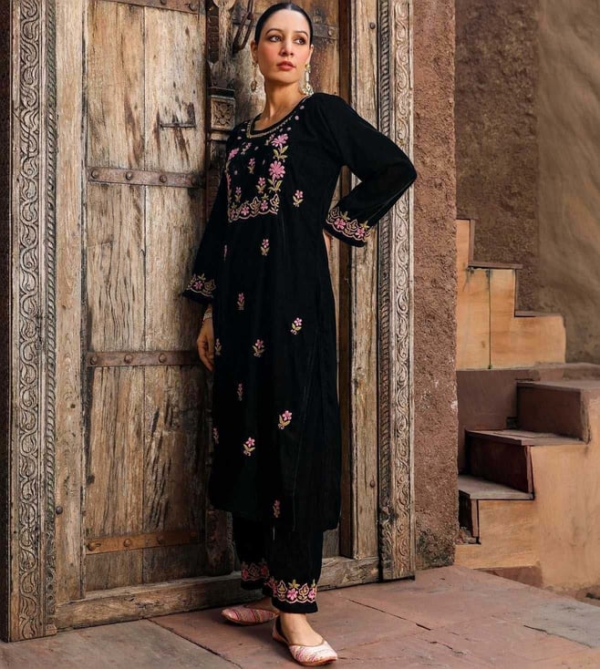 House of Chikankari Black Rumi Chikankari Velvet Straight Kurta Set