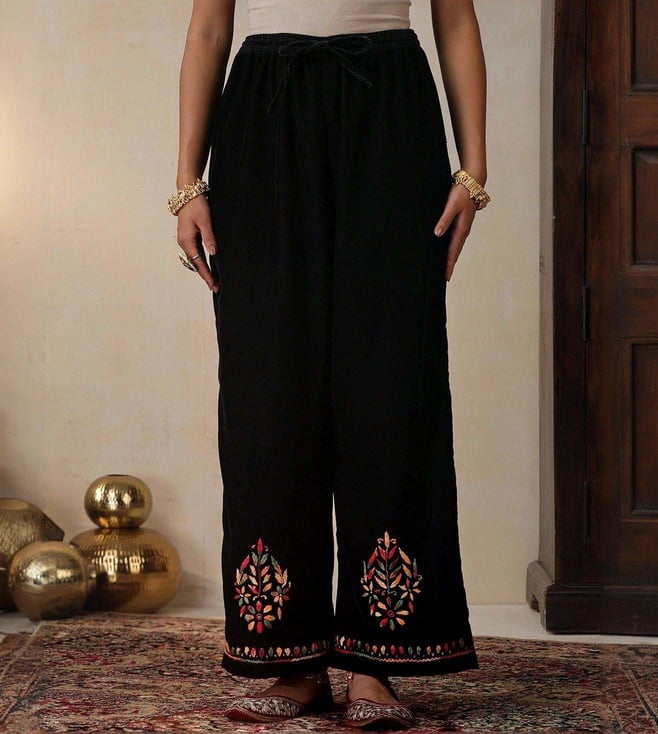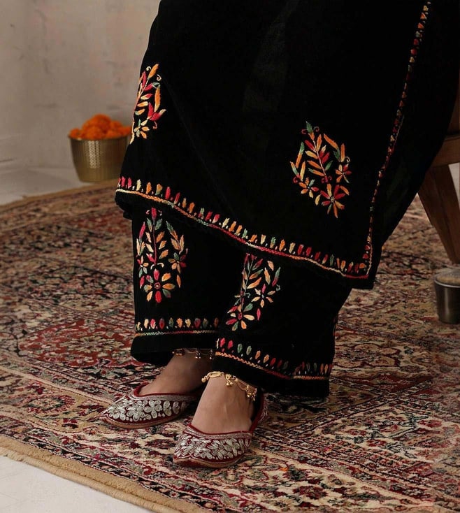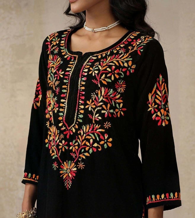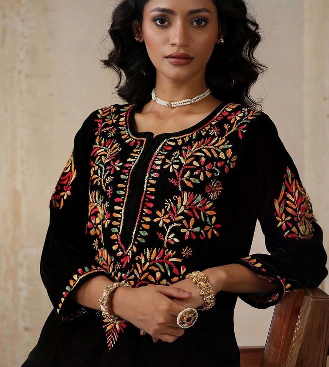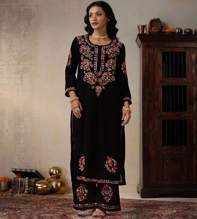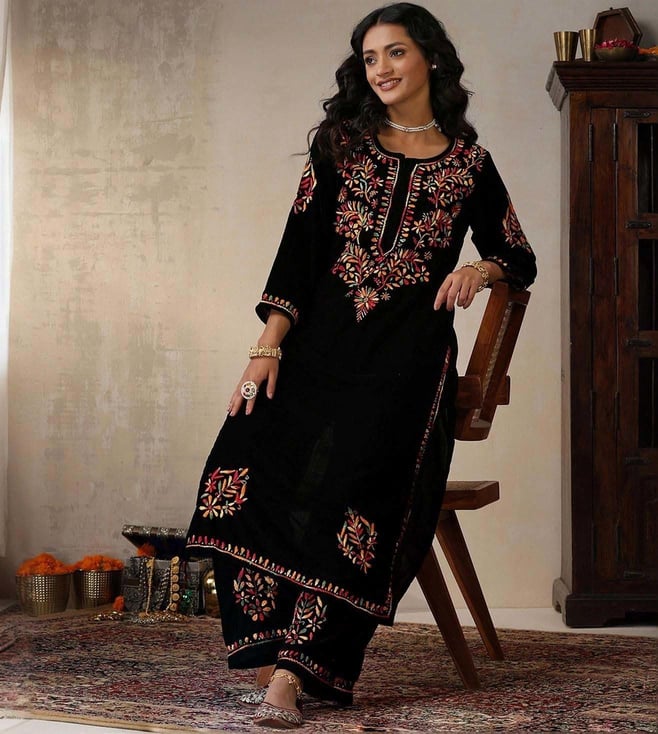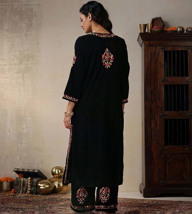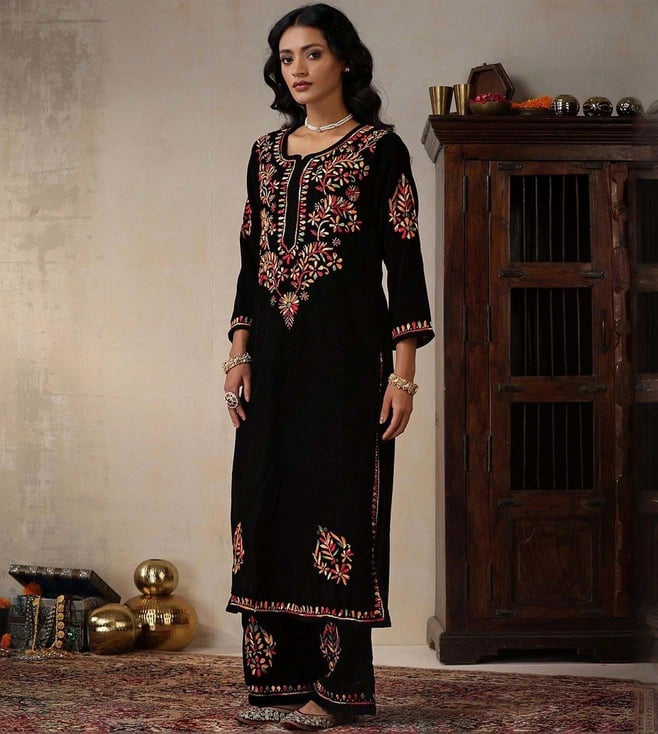 House of Chikankari Black Velvet Chikankari Solid Women's 2 PC Long Kurta Set