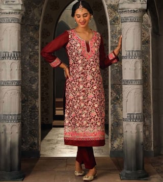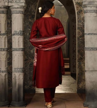 Exhibit your rich sense of style by wearing this kurta set with dupatta. Tailored to sartorial perfection from wool, it assures a soft and soothing touch against the skin. Disclaimer: Product colour may slightly vary due to photographic lighting sources. Country of Origin - India.
