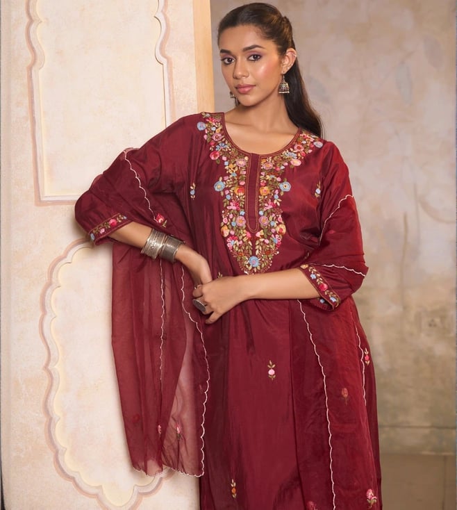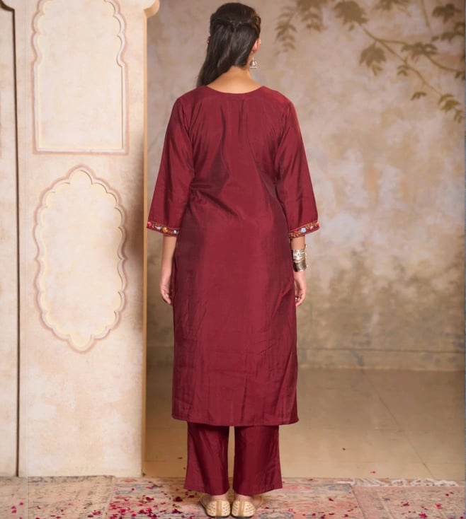House of Chikankari Maroon Sequins Embroidered Regular Fit Long Kurta Set