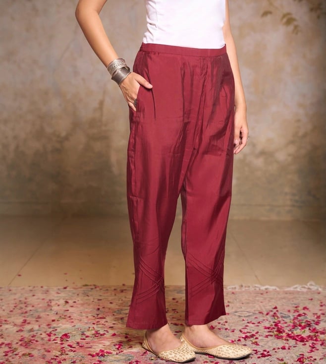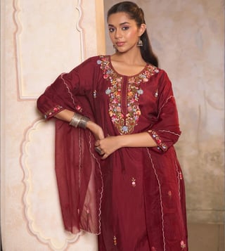 Elevate your everyday style with the House of Chikankari Maroon Sequins Embroidered Regular Fit Long Kurta Set. Made from a luxurious blend, this set is perfect for daily wear and features intricate sequin embroidery that adds a touch of elegance. With a comfortable round neck design, this kurta set effortlessly combines tradition with modern sophistication, making it a must-have for anyone looking to make a statement with their wardrobe. Upgrade your look with this stunning piece that will surely turn heads wherever you go.