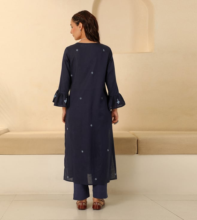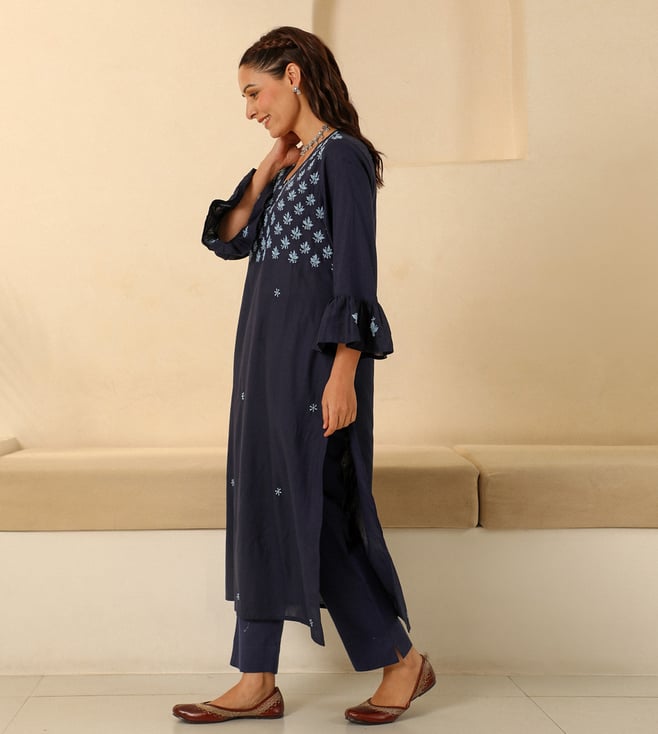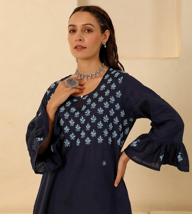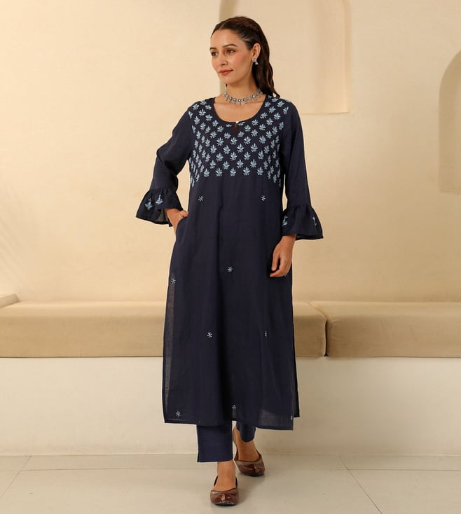House of Chikankari Navy Blue Cotton Straight Kurta