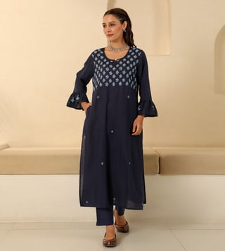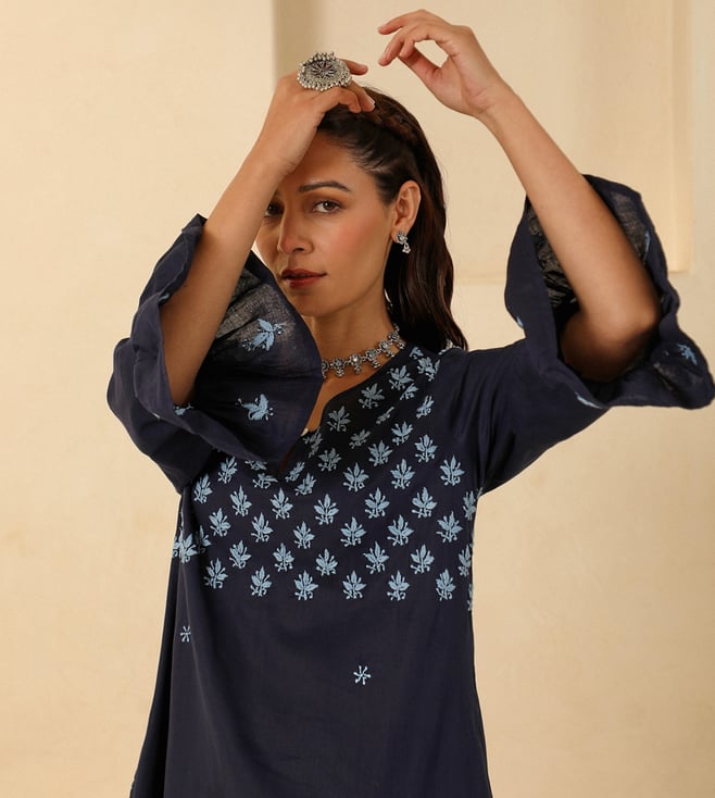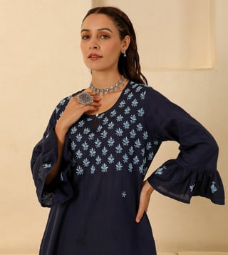Experience elegance with the Cotton Chikankari Solid Women's long kurta - Navy blue. Perfect for any occasion, this piece blends traditional craftsmanship with modern style. Authentic Chikankari.