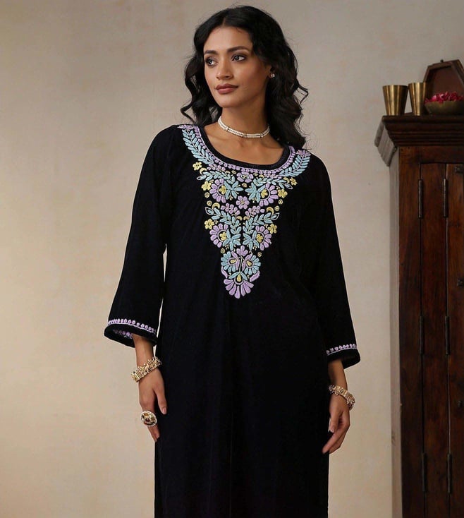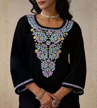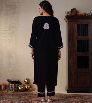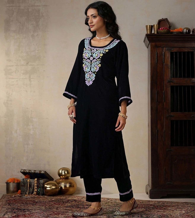Earn admiration for your rich sense of style by wearing this kurta set. Tailored to sartorial perfection from velvet, it assures a soft and soothing touch against the skin. Disclaimer: Product colour may slightly vary due to photographic lighting sources. Country of Origin - India.