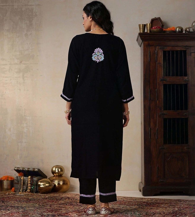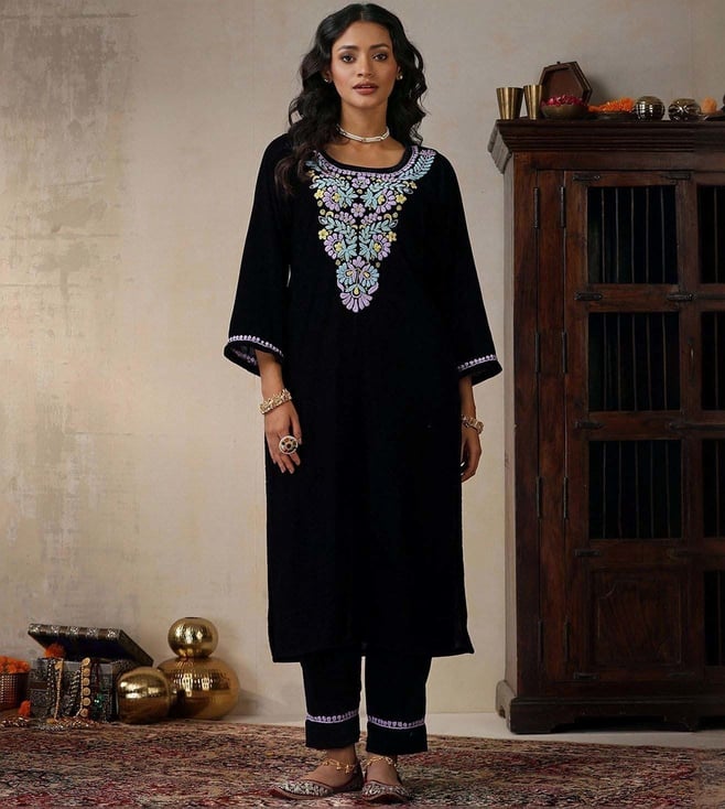 House of Chikankari Navy Blue Velvet Chikankari Solid Women's 2 PC Long Kurta Set