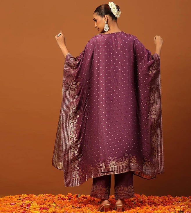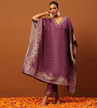 House of Chikankari Purple Silk Blend Regular Fit Kaftan Set