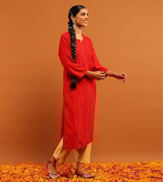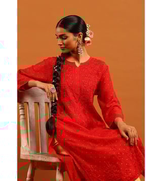 Banarasi Chanderi Chikankari Solid Women's Long KurtaRed.Disclaimer: All Other Items In The Image Are Only For Display Purposes And Will Not Be A Part Of The Delivery Content. Product Colour May Slightly Vary Due To Photographic Lighting Sources. Country Of¿Origin¿¿India