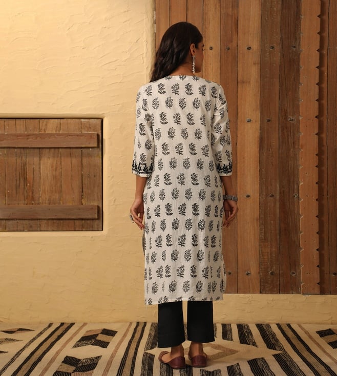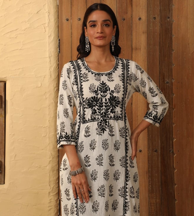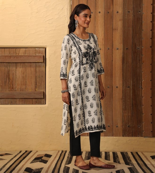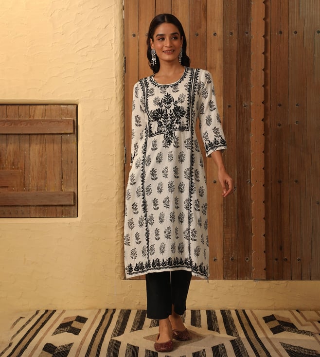 House of Chikankari White Cotton Chikankari 3/4th Sleeve Kurta