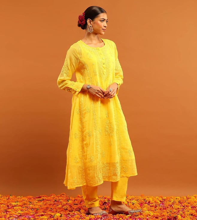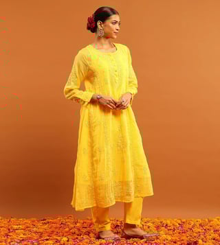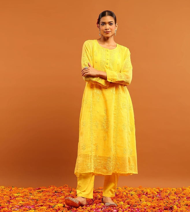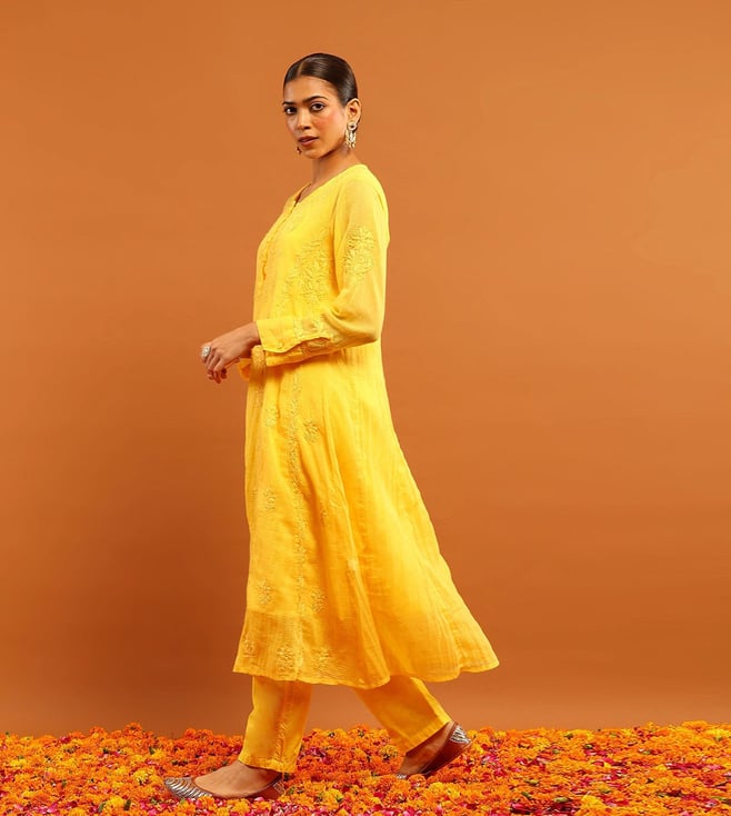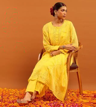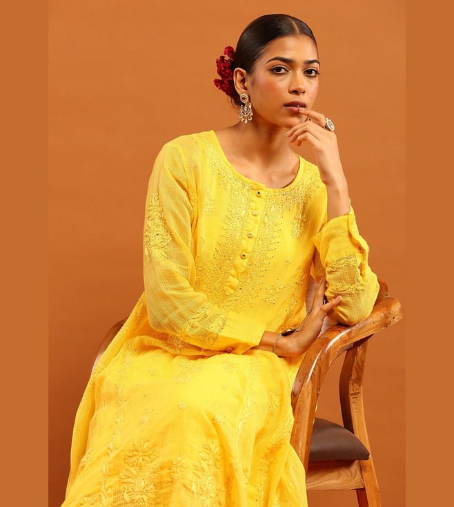 House of Chikankari Yellow Kota Regular Fit Kurta