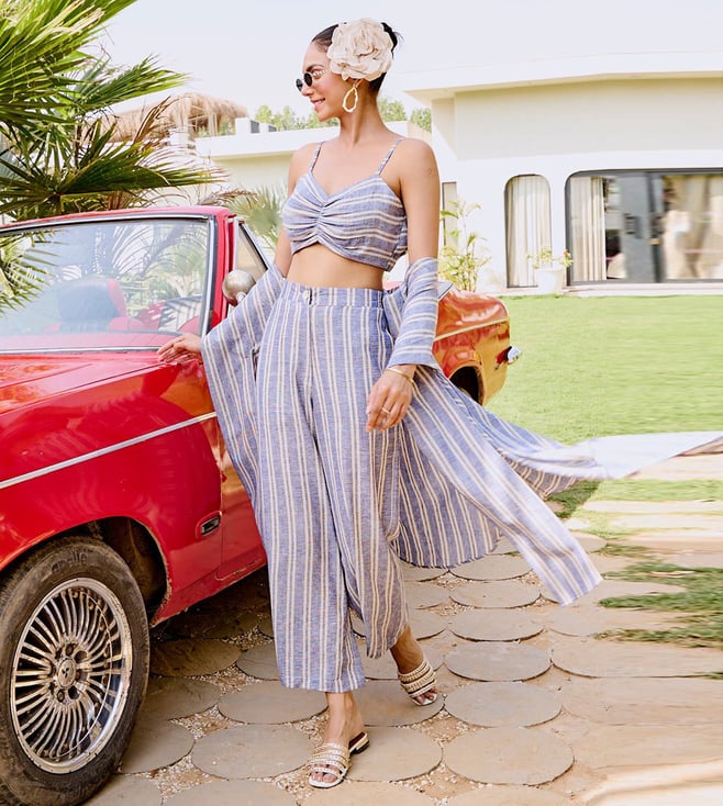 Beige Omaha Striped Relaxed Fit Mini Cape and Dress