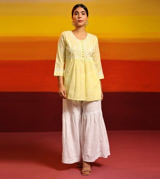 Samma Chikankari Short Kurta in Cotton for Women - Yellow