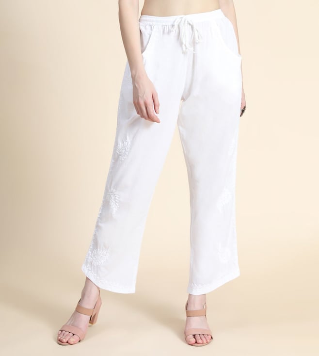 HOK Chikankari Cotton Pant Trouser White