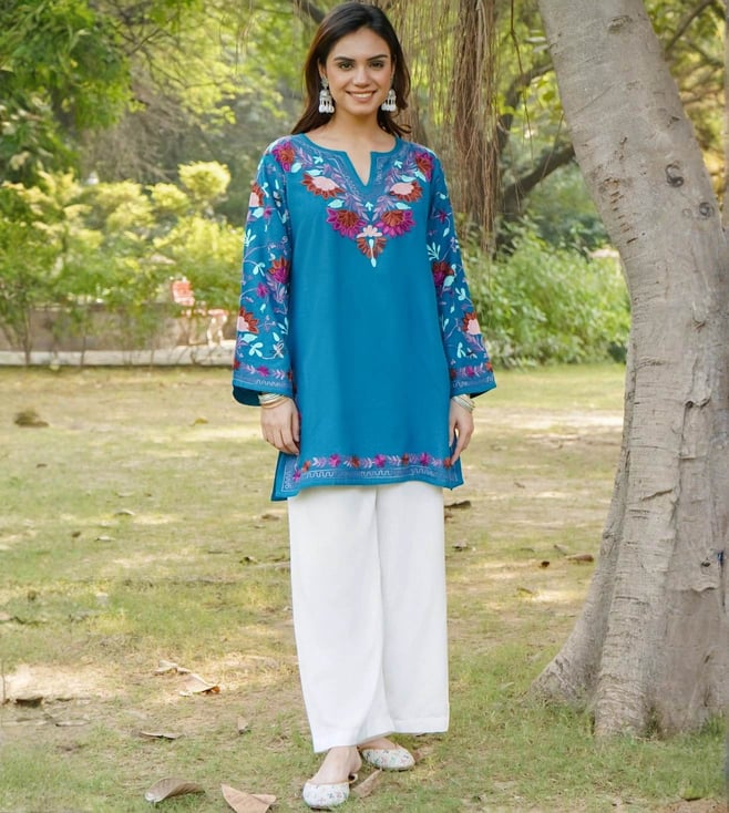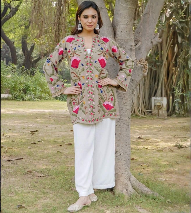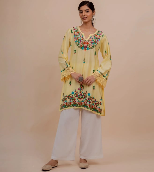 White Falak Kashmiri Kurta Set With Pant