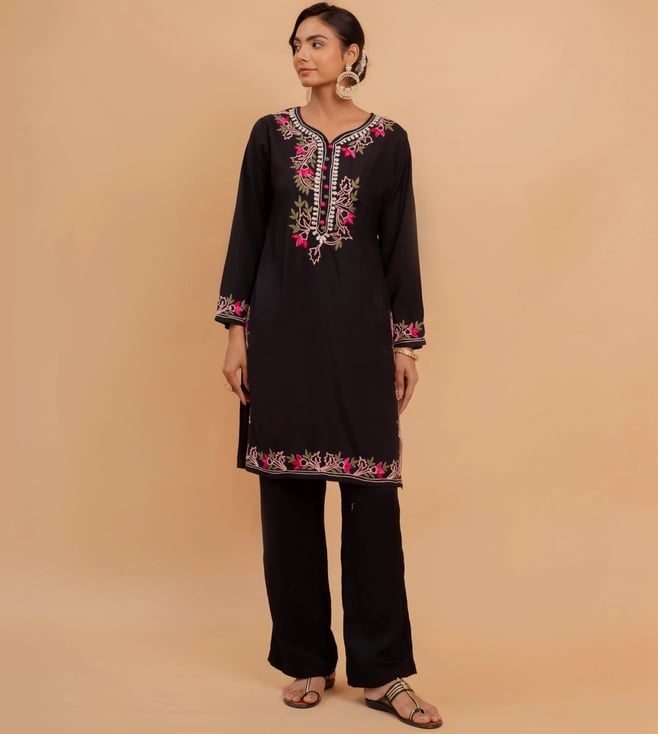 Black Falak Kashmiri Kurta Set With Pants