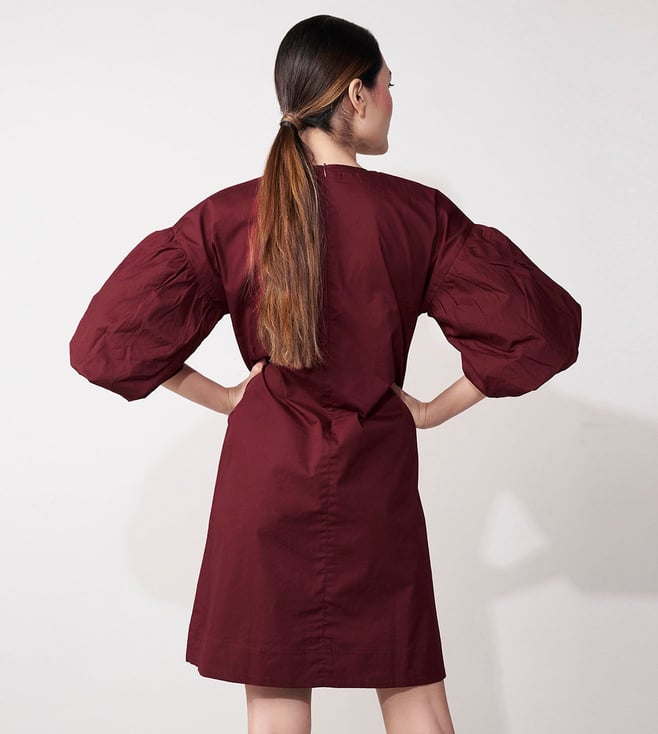 Maroon Balloon Sleeve Mini Dress