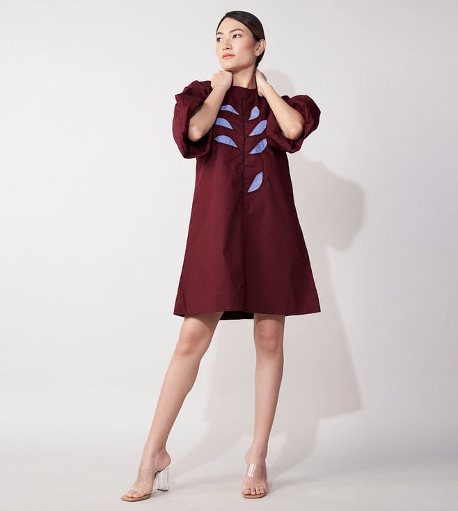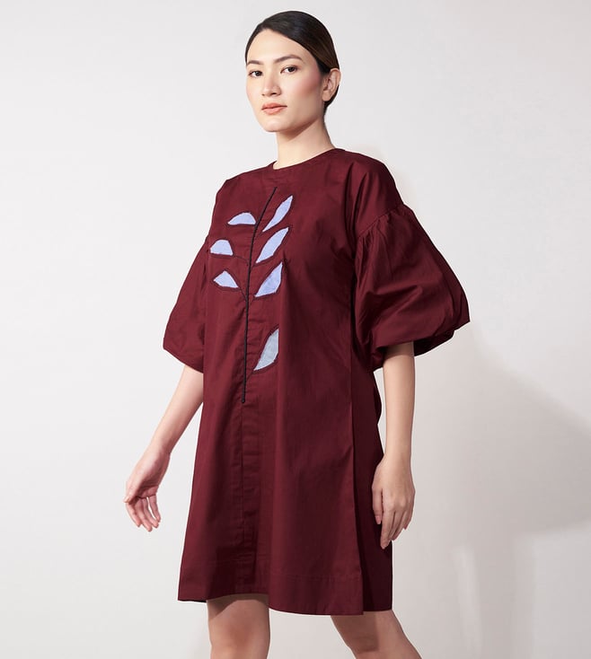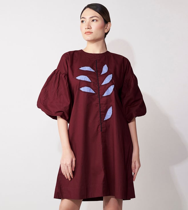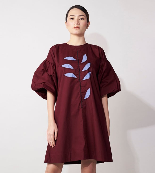 Get ready to turn heads in the House of Manaa Maroon Balloon Sleeve Mini Dress. This stunning dress features flare sleeves and is made from 100% cotton, making it perfect for casual wear. Embrace your feminine side in this gorgeous maroon dress.' Disclaimer: All other items in the image are only for display purposes and will not be a part of the delivery content. Product colour may slightly vary due to photographic lighting sources. Country of Origin - India.