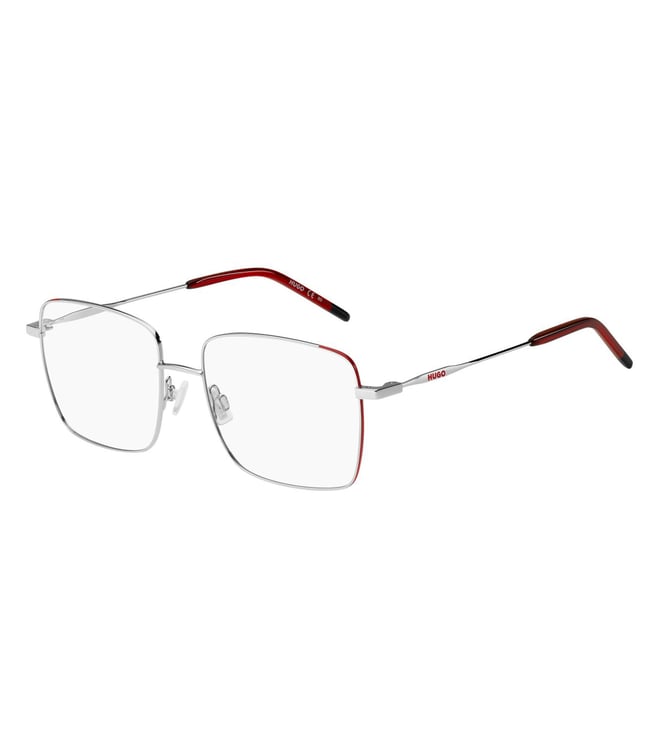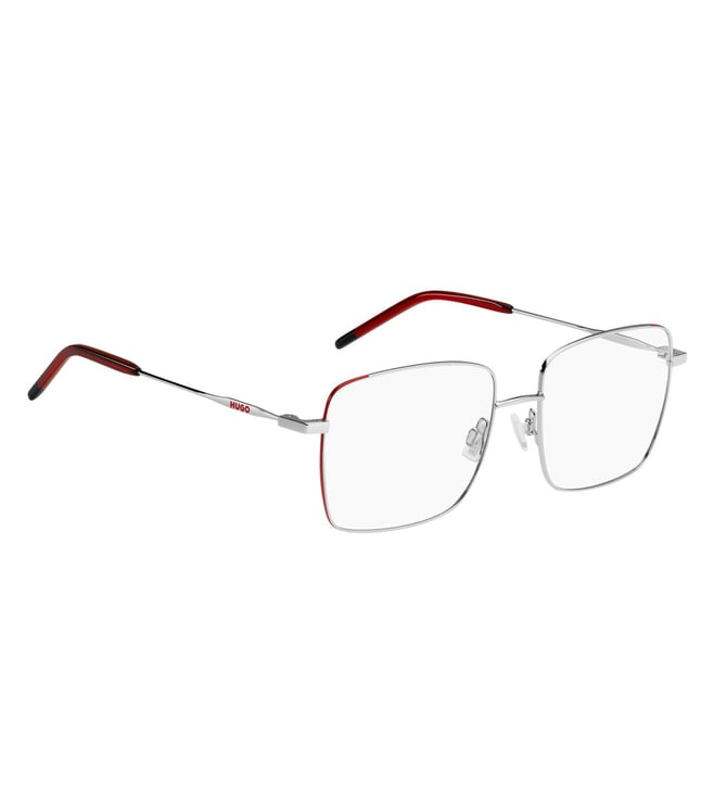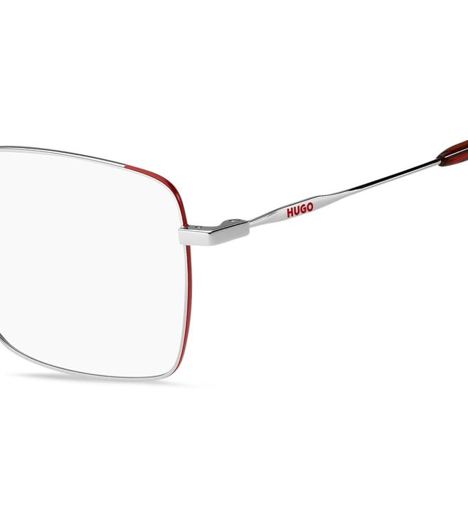HUGO 106613J2B5416 Silver Red Rectangular Eye Frames for Women