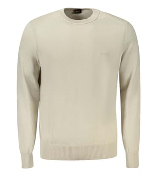 Adorn the modern look with this beige crewneck logo sweatshirt from Hugo Boss crafted in cotton/kapok featuring crewneck, long sleeves, logo detailed, ribbed cuffs and hem, pullover.