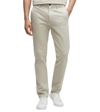Adorn the modern look with this beige tapered fit pant from Hugo Boss crafted in cotton/elastane featuring tapered fit, button closure, zip fly, multiple pockets, belt loops. Products purchased from Darveys are supported exclusively by the warranty/exchange policies of Darveys and its partner boutiques. Brand owners and their channel partners are not responsible for exchange/warranty services for items purchased through Darveys.