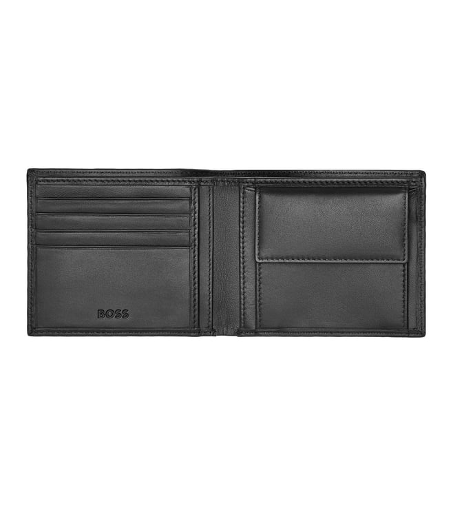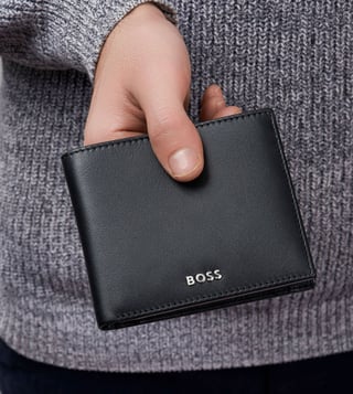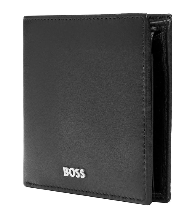 The Boss Classic Smooth line is Boss ultimate minimalist, timeless small leather goods offering, characterized by carefully chosen leathers and understated aesthetics. All pieces are masterfully crafted and signed with crisp chrome Brand plates, along with monogram linings. The designs are available in black and brown. This classic wallet with coin pouch includes : 2 currency compartments 4 card slots 3 side compartments 1 coin pocket