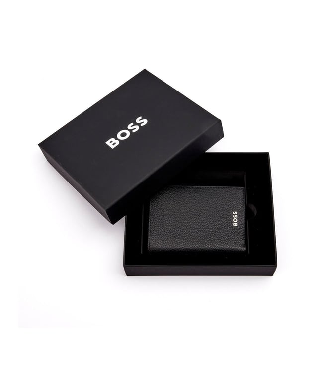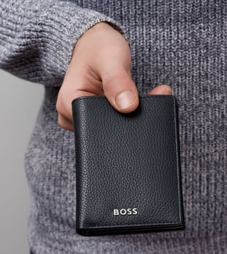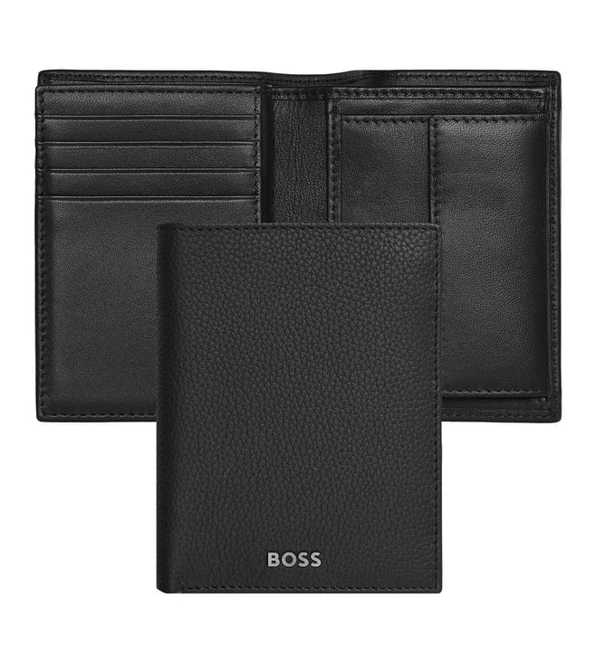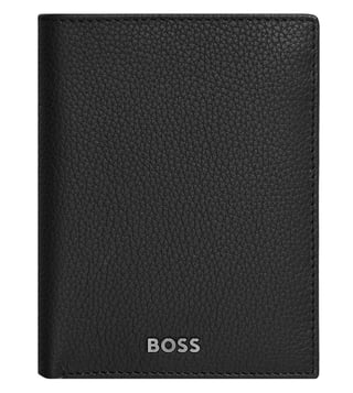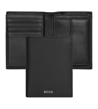 This card holder with flap & money pouch is made of catefully chosen, top grain black grained leather. it is signed with a luxurious chrome BOSS signature plate, and features monogrammed inside lining. It features : 2 currency compartments 12 card slots 5 side compartments 1 coin slot In adhesion with the BOSS brand DNA, it is simple, functional, elegant & minimal.