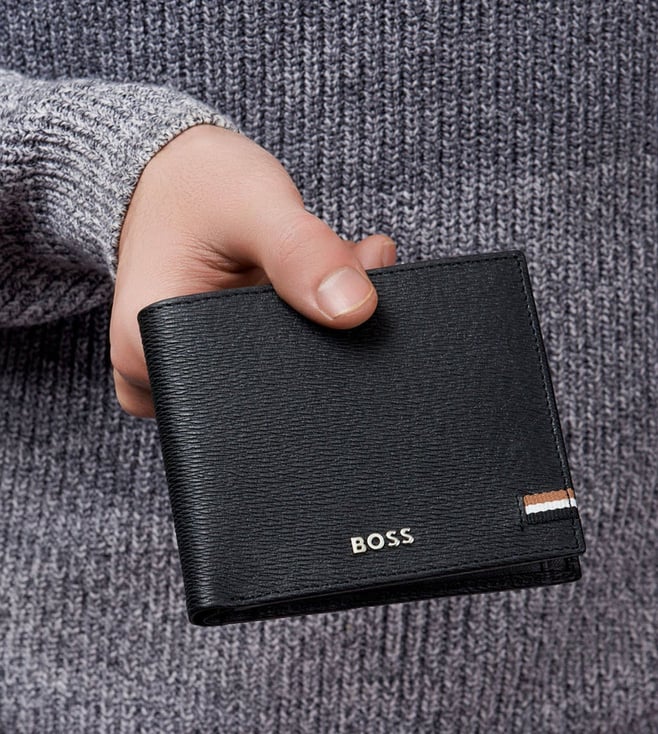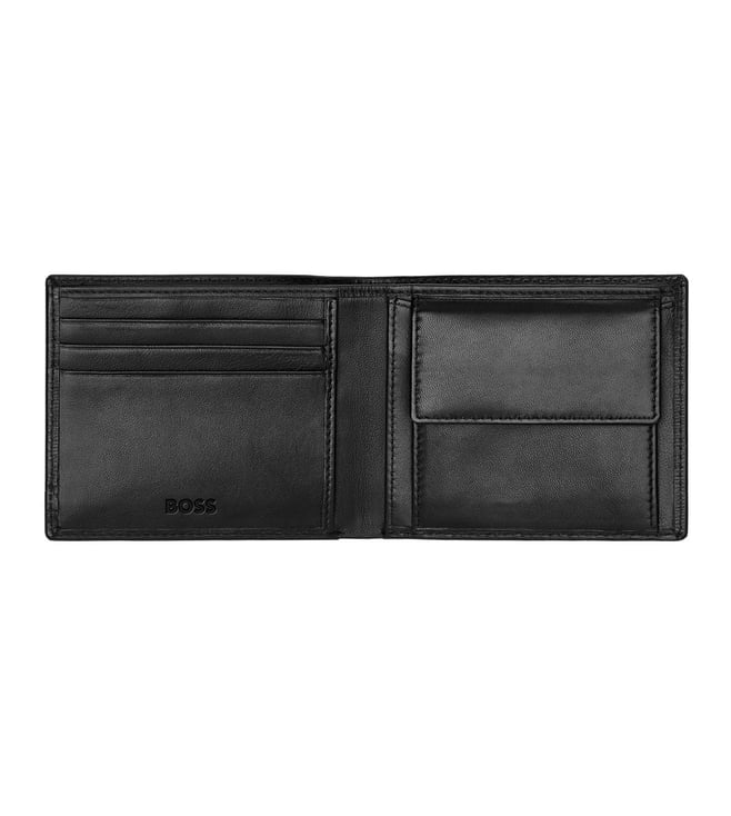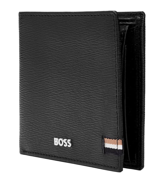 Boss Iconic line is characterized by carefully chosen top-grain textured leathers and on trend aesthetics . All pieces are skilfully assembled and beautifully finished with crisp chrome signature plates and monogram linings. Another distinctive feature of this iconic version is the tricolored textile flag that adorns all items in this series. This classic coin wallet features : 2 currency compartments 4 card slots 3 side compartments 1 coin pocket